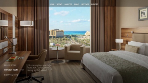 DELUXE ROOM With uninterrupted views across the Red Sea and Juman Park, these rooms offer contemporary styling, modern furnishings SUPERIOR ROOM - 33 m² and range of premium amenities. EXECUTIVE SUITE